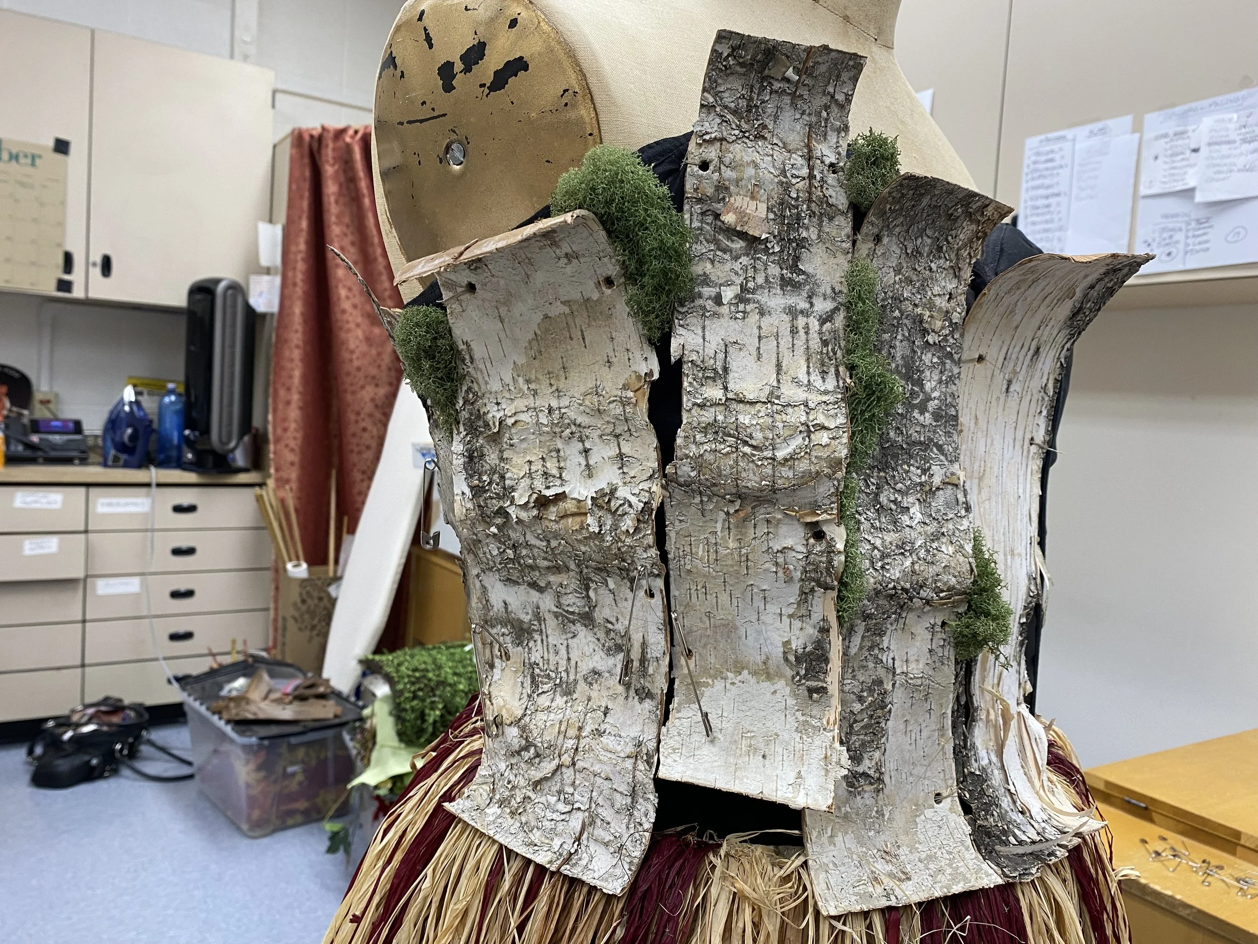 So what you see to the left is the costume for Athorn the oldest and wise of the Gods. His costume was a grass skirt and corset with bark sewn on and moss glued on.