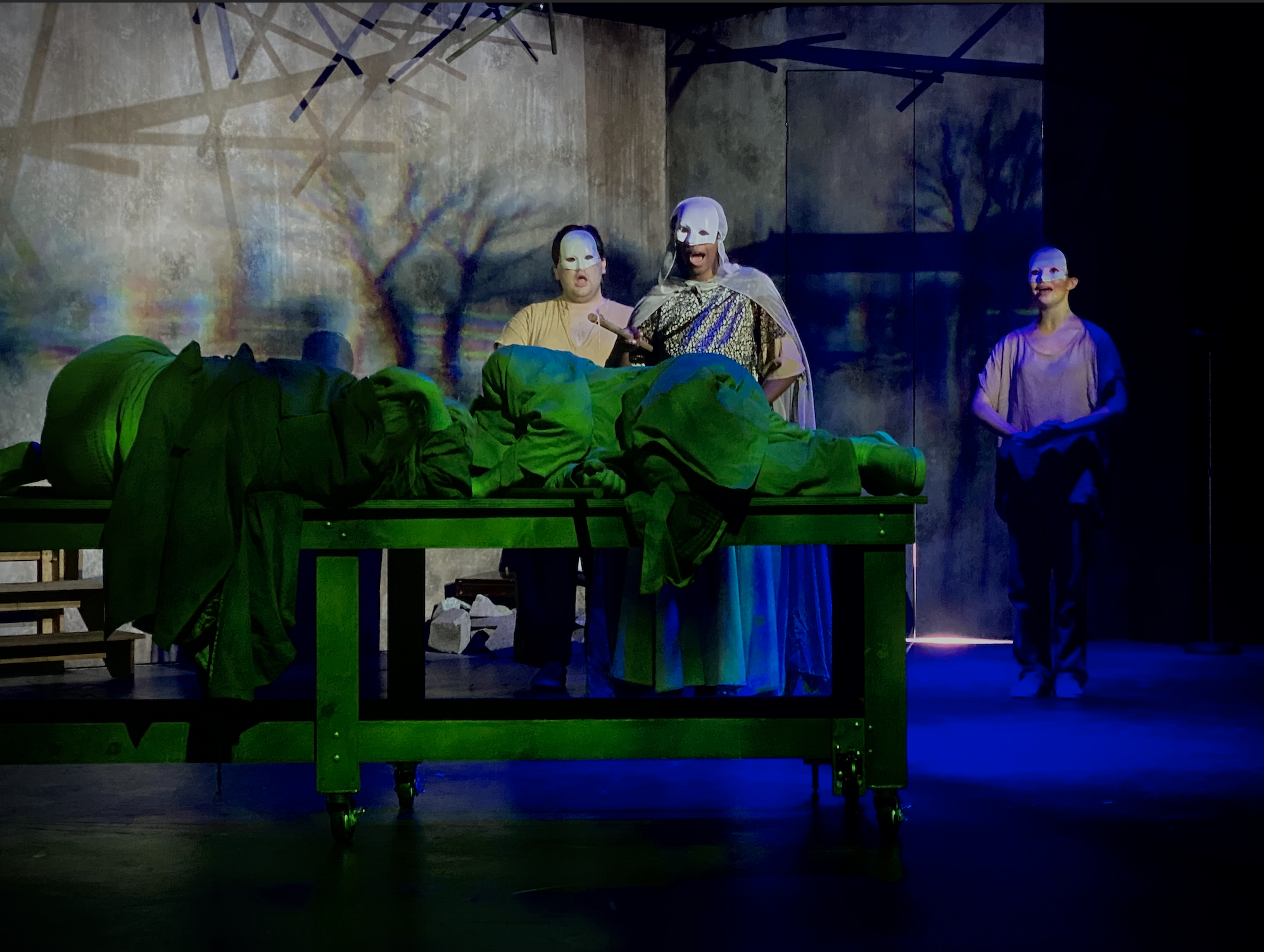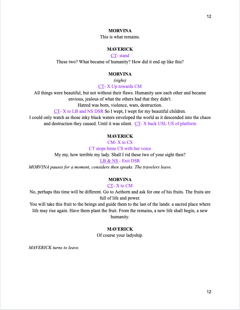 This was a devised piece written by the actor. So while not having a printed script we had to type of the script after the actors write in their journals.